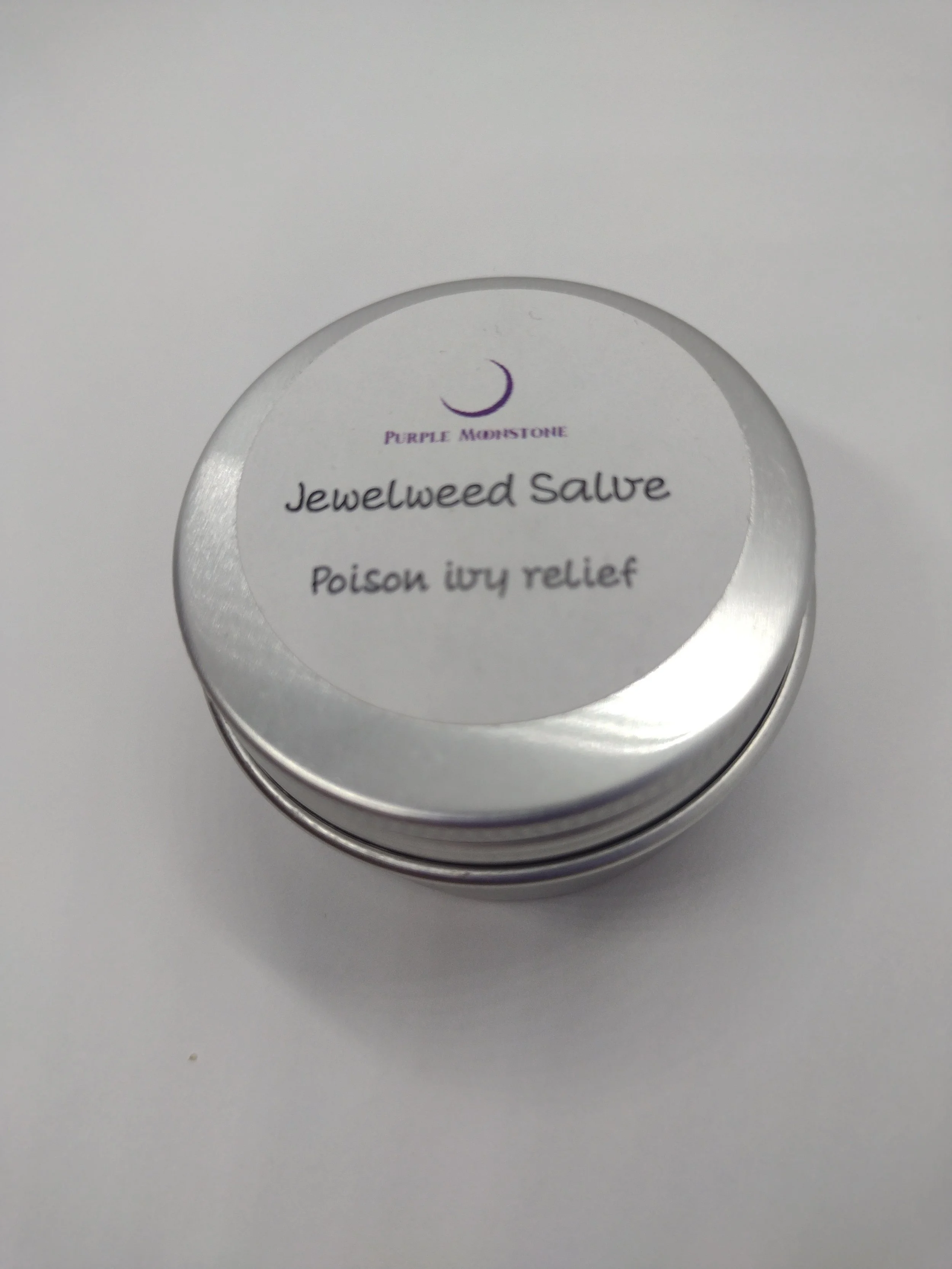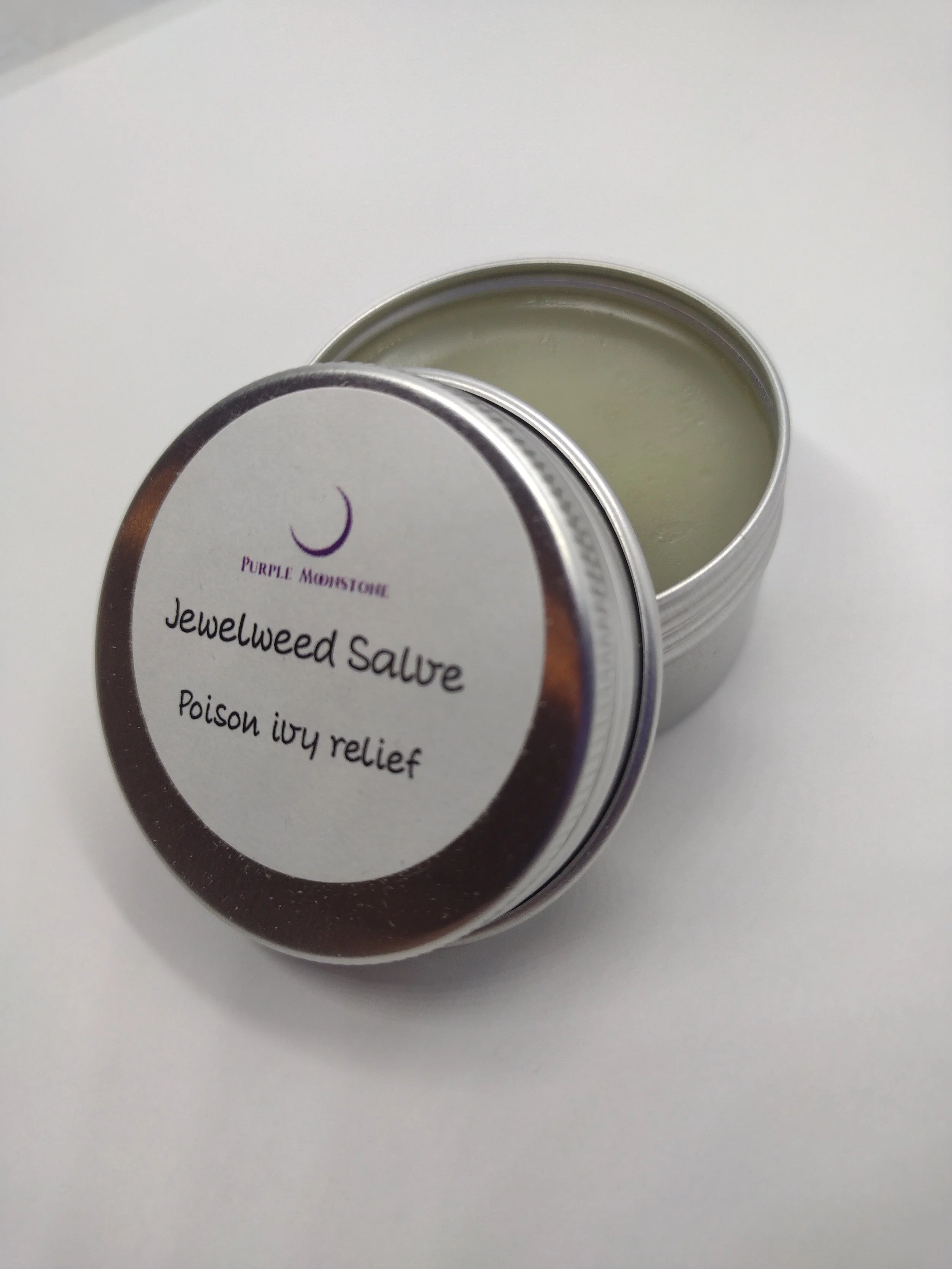 Shop › Jewelweed Salve 1oz Image 1 of 2 Image 2 of 2 Jewelweed Salve 1oz $16.00 Poison ivy relief. Ingredients-organic olive oil infused with jewel weed plant and beeswax. Quantity: Purchase Added! Poison ivy relief. Ingredients-organic olive oil infused with jewel weed plant and beeswax.